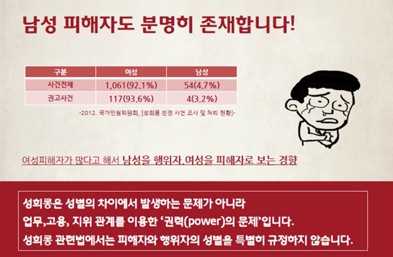 ![]() ▲ 여성가족부 2013년도 성희롱예방교육 표준강의안 「직장 내 성희롱 예방교육」 중에서 |