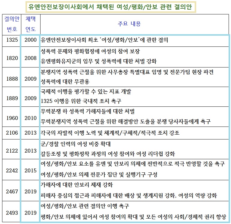 ![]() ▲ 유엔안전보장이사회에서 채택된 여성 평화 안보 결의 |