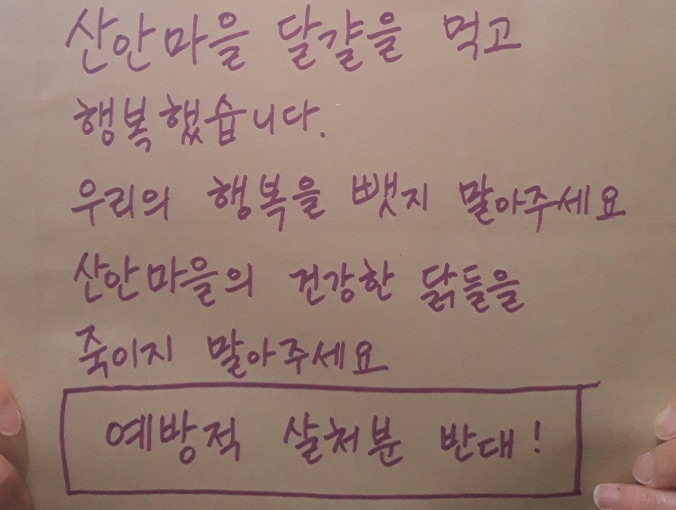 그리고 무엇보다 닭들과 함께 살고 싶기 때문이라고. 닭은 고마운 존재이고, 존중받아야 하는 존재이지, 위협이 왔을 때 사람들의 편의에 따라 마음대로 처분할 수 있는 대상이 아니라고 생각하기 때문이라고.