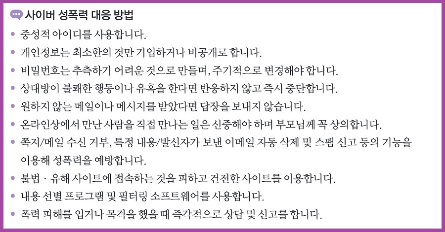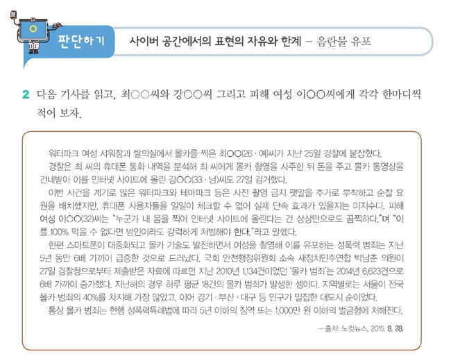 ![]() ▲ 중고등학생용 디지털 시민교육 교재 “사이버성폭력, 그 환경을 뒤집다” 중 일부. |