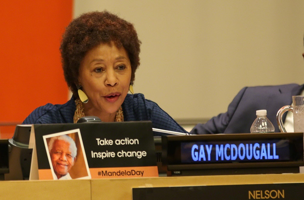 ![]() ▲ 국제인권변호사 게이 맥두걸(Gay McDougall) 1998년, 유엔인권소위원회에 「무력충돌 중의 체계적 강간, 성노예제와 다름없는 관행」 보고서를 제출했다. (출처: 지속가능한 개발을 위한 국제연구소(IISD) 산하 Earth Negotiations Bulletin 홈페이지 enb.iisd.org) |