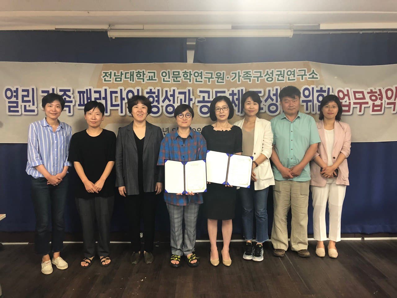 ![]() ▲ 2019년 8월 29일 전남대학교 인문학연구원와 가족구성권연구소가 업무협약을 체결한 모습. (가족구성권연구소 제공) |