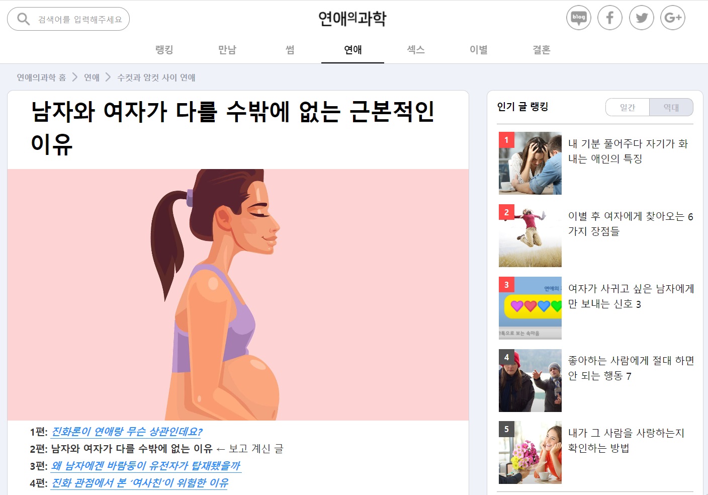 ![]() ▲ "연애의 과학"은 연애와 관련된 심리학 연구를 소개하는 웹사이트이다. 모바일 어플리케이션으로도 볼 수 있다. 출처: 연애의 과학 홈페이지(scienceoflove.co.kr) |