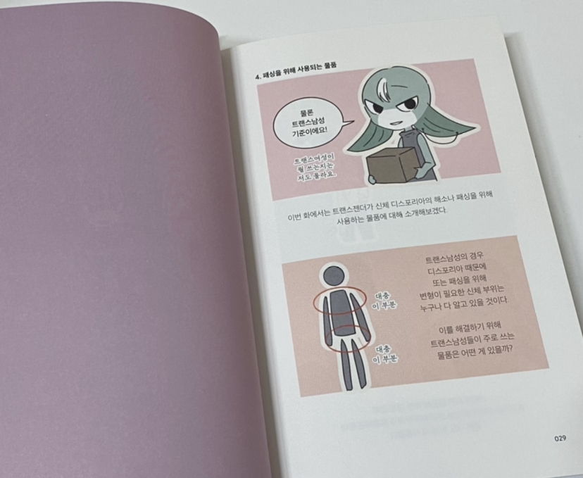 “현재 트랜스젠더들이 마주하는 혐오에 대해서 조금 이야기를 하고 싶었어요. 사실 계획 상으론 마지막 장에 그 이야기를 넣을 생각이었거든요. 그런데 책 작업을 하다 보니, 혐오를 마주했던 개인적 경험을 꺼내는 것도 쉽지 않았고, 좀 밝은 분위기로 마무리하고 싶었어요. 그래서 그 부분을 뺐는데, 나중에 언젠가는 그런 이야기도 다뤄봐야 하지 않나 싶어요. 특히 요즘 상황을 보면 더 그렇죠.”