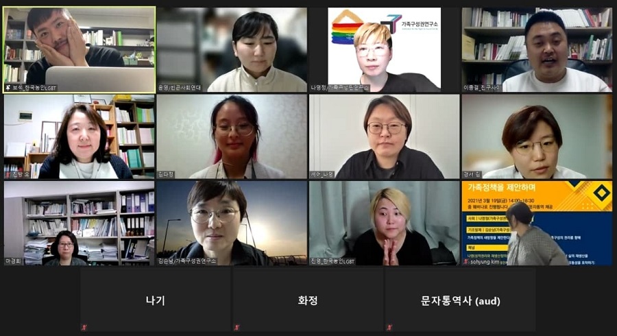 ![]() ▲ 가족구성권연구소가 주관한 <‘가족다양성’을 넘어 차별과 불평등 해소를 위한 가족정책을 제안하며> 온라인 토론회 참가자들. |
