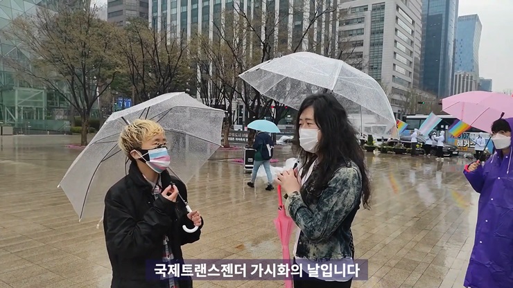 ![]() ▲ 3월 27일 열린 ‘국제 트랜스젠더 가시화의 날’ 기자회견에서 임푸른 씨(오른쪽)와 한국성적소수자문화인권센터 홀릭 대표의 모습. (출처: 정치하는 트랜스젠더 임푸른 유튜브) |