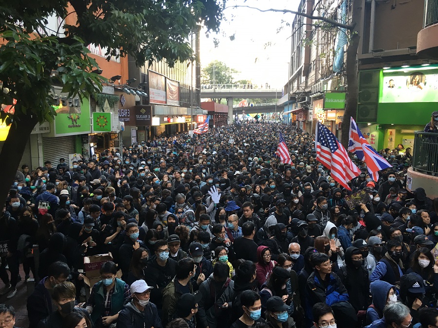 ![]() ▲ 2019년 12월 9일, 홍콩에서 세계 인권의 날(10일)에 맞춰 열린 집회. 주최 측 추산 80만 명이 참가했다. 필자인 아코 토모코 씨도 함께했다. (제공: 아코 토모코) |