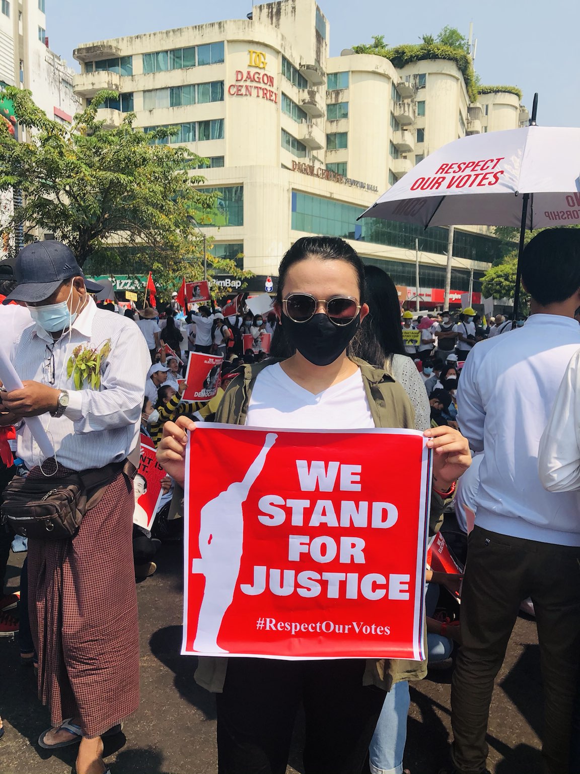 대신, 난다는 매일 시위에 나갔다. 아침에 일어나면 뭘 좀 먹고 나서 바로 집회에 나갔다가 오후 3시쯤 돌아오는 일상이 한동안 이어졌다. 거리에서 많은 시민들과 함께 민주주의를 요구하는 구호를 외치다 보면, 쿠데타를 일으킨 군부를 몰아낼 수 있으리라는 희망이 느껴졌다.