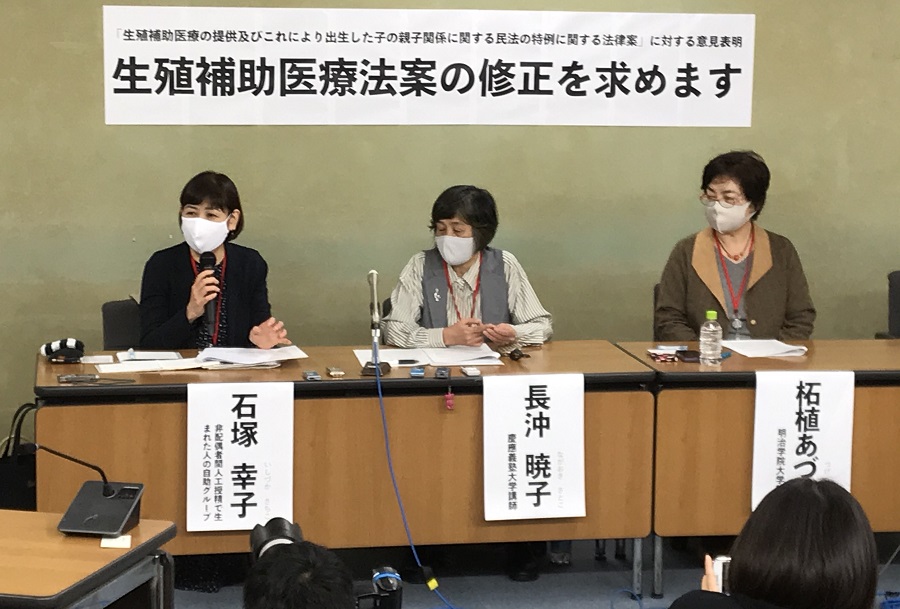 이 생식보조의료법에 대해 비판하며 개정을 요구하는 목소리들을 들어보았다. ‘비배우자 간 인공수정으로 태어난 사람들의 자조모임’(DOG) 멤버인 이시즈카 사치코(石塚幸子) 씨와 게이오기주쿠대학 강사인 나가오키 아키코(長沖暁子) 씨의 글이다.