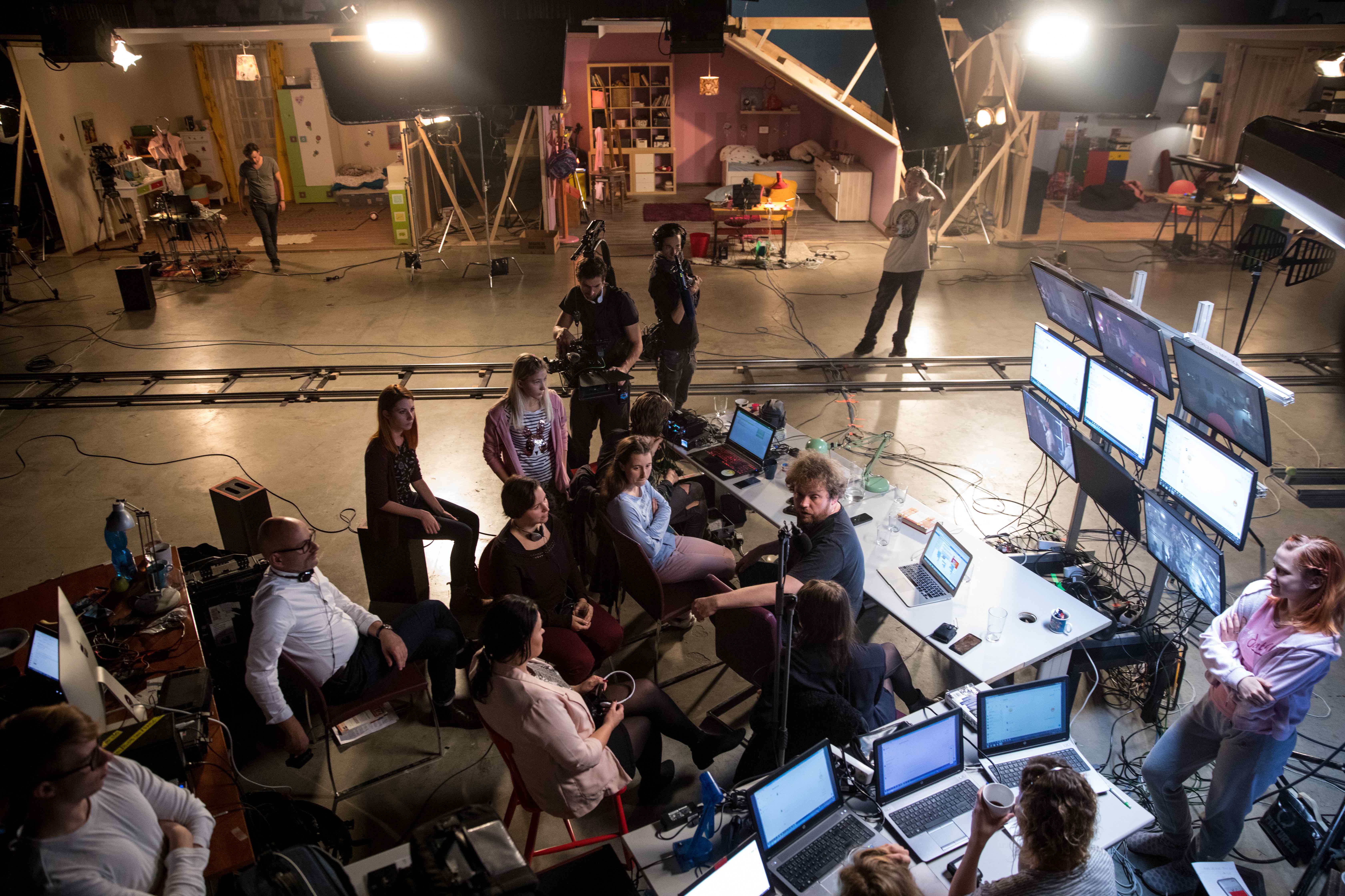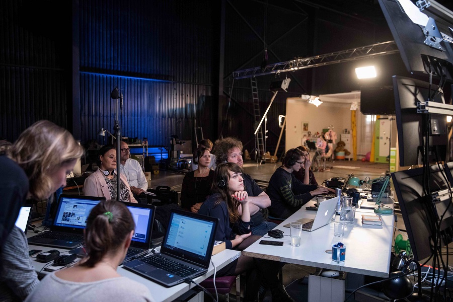 영화는 문자채팅뿐만 아니라 화상채팅 현장을 담기 위해 배우들이 12세 소녀로서 지낼 방을 세트장으로 짓고, 방에 둘 소품들도 섬세하게 구비한다. 분장과 의상도 마련하고, 실제 공간인 것처럼 보이도록 날씨까지 체크하며 조명을 맞췄다. 그렇게 만들어진 현장. 책상 위 노트북 앞에 배우들이 각기 자리한다. 또한 영화 제작 과정엔 성과학자, 변호사, 경찰, 심리 상담사 등의 전문가의 자문을 얻기 위해 상황에 맞게 그들을 배치하고, 함께 영화를 만들어 나간다.