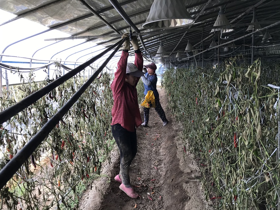 10. 고추밭 수확이 끝나고, 밭에 물을 주기 위해 설치했던 검은 호스를 정리하는 작업도 이주노동자들의 몫입니다.