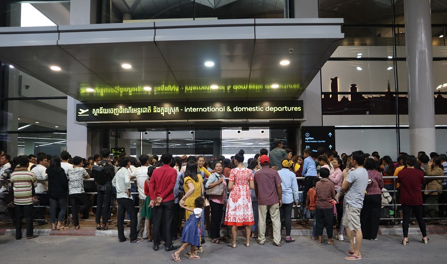 5. 프놈펜 국제공항입니다. 안에는 여권이 있는 사람만 들어갈 수 있습니다. 그래서 가족과 지인들은 이렇게 문 밖에서 한국으로 가는 노동자를 배웅합니다.