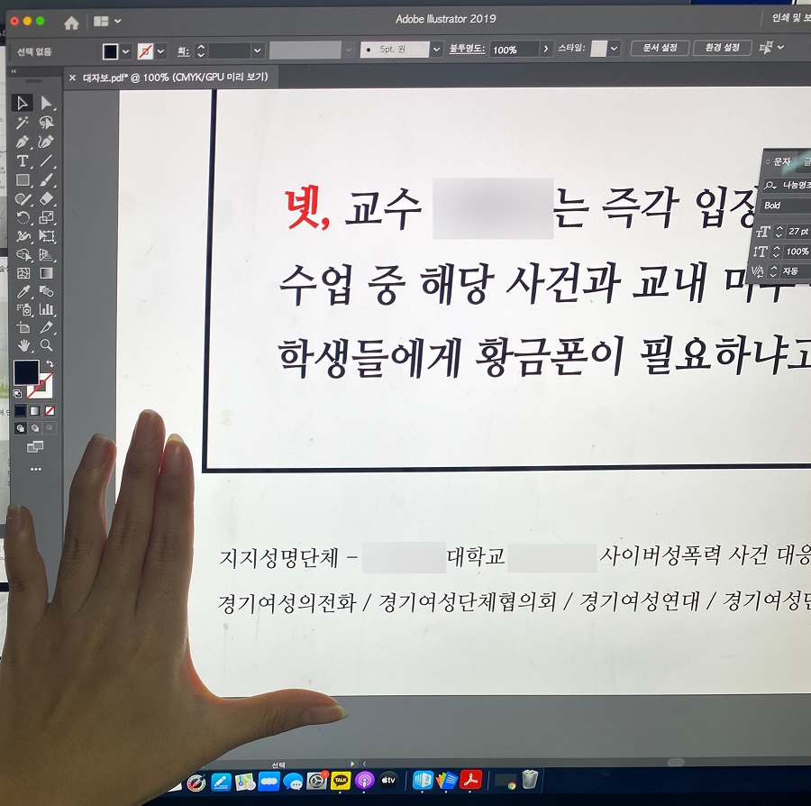 나와 친구들만 의기투합했던 것은 아니다. 가해자들도 서로를 전폭적으로 도왔다. 그들의 연대는 새로운 형태의 가해였다. 피해자들의 신상은 뉴스 보도와 동시에 학교와 졸업생들 사이에서 널리 퍼졌다. 내 개인정보 역시 마찬가지였다. 피해자의 인적사항은 떠돌다 못해 나에게까지 전해졌다. 소문의 근원지는 가해자와 그의 친구들이 속한 학과였다. 가해자의 친구는 거짓된 주장을 바탕으로 피해자 측을 향해 손해배상 소송을 걸기도 했다. 사건 공론화를 막으려는 방해 공작도 있었다. 그 결과 많은 뉴스와 방송들이 재편집되거나 삭제되었다. 우리는 반성 없이 발악하는 가해자들을 보고 다짐했다. 끝까지 싸우자고. 졸업생, 재학생 가릴 것 없이 힘을 합쳐 사건을 해결하기 위한 작은 모임을 만들었다.