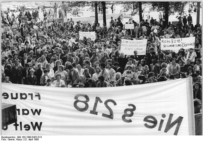 ![]() ▲ 1990년 통일을 목전에 둔 베를린 시민들이 임신중단을 처벌하는 형법 218조에 반대하는 시위를 하고 있다. 출처: Bundesarchiv |