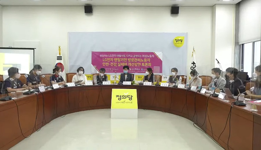19일, 전국금속노동조합과 정의당 강은미 의원 주최로 국회의사당에서 열린 <LG전자 렌탈 가전 방문관리노동자 안전‧건강 실태와 개선방안 토론회>에서, 각 가정을 방문해 렌탈 가전을 점검하는 LG케어솔루션 매니저들의 노동 실태가 밝혀졌다.