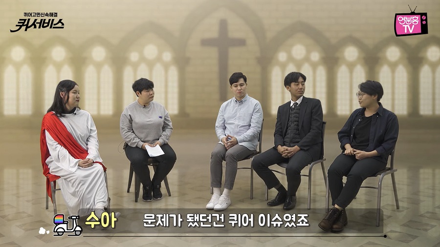 -‘연분홍치마하면 다큐멘터리’가 떠오를 정도로 다큐 필모그래피가 탄탄한데요. 2019년, 유튜브에 연분홍TV를 런칭하고 예능 쇼를 표방한 <퀴서비스>(퀴어들의 고민을 해결해 주는 서비스 본부)를 시작했잖아요? 단편 웹 드라마 <애기레즈의 고백법>과 웹 시트콤 <으랏파파>도 만들었는데, 다큐를 하다가 이런 재미 위주의 콘텐츠를 만들게 된 이유가 너무 궁금합니다.