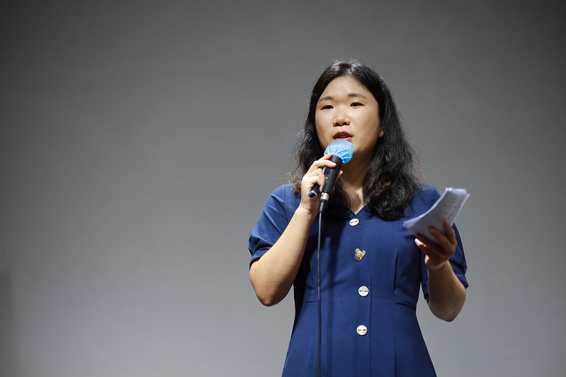 ![]() ▲ 이경은 금산군마을만들기지원센터 팀장이 9월 15일 열린 제6회 에코페미니스트들의 컨퍼런스에서 발표하는 모습. (여성환경연대 제공) |
