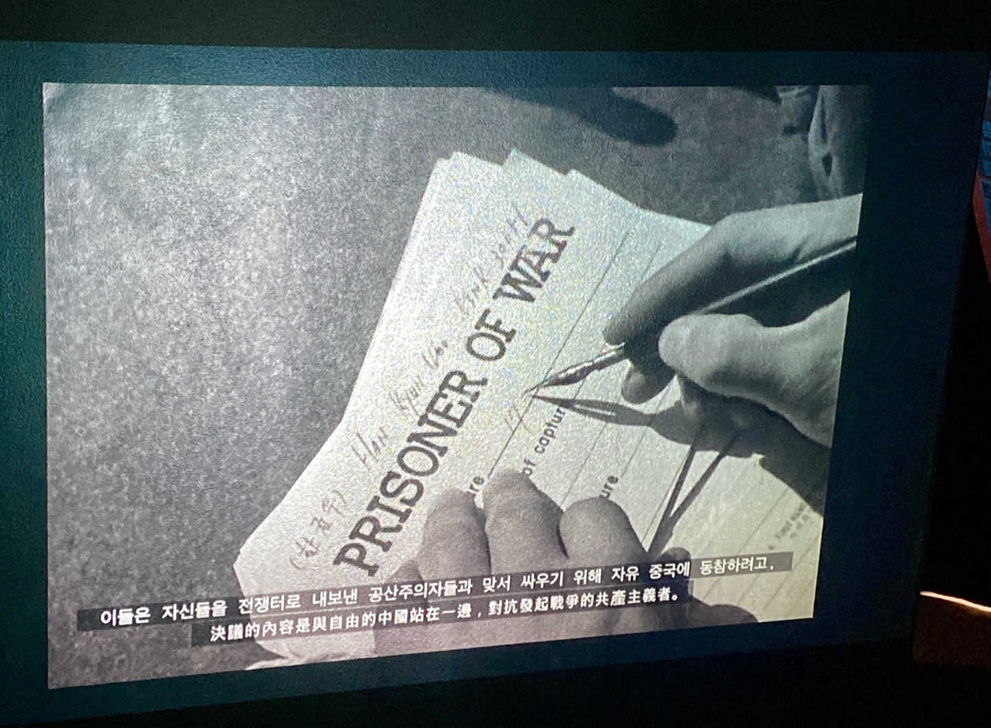 전규리 작가의 <산증인>(2021)은 이 전시의 가장 흥미로운 내용으로 꼽고 싶은 작품이다. 언뜻 봤을 때 이 전시의 흐름과 불화하는 것처럼 보이는 <산증인>은 1950년대 전쟁 포로들의 몸에 새겨졌던 문신에 대한 이야기를 다룬다. ‘남성적’인 것의 최고봉으로 꼽히는 군대와 군인들의 사진과 영상으로 채워진 이 작품은, 국가 혹은 권력이 군인이지만 전쟁포로 신분이 된 몸들에 새긴 “애국”, “국충”, “공산당을 무찌르자”가 그 몸들에게 어떤 ‘낙인’을 가져왔는지 보여준다. 심지어 “문맹이었던 그들 몸에 새겨진 글자들”이 이들의 삶을 어떤 방향으로 이끌었는지를 보면, 이 전시의 제목이자 모든 작품을 통해 던지고자 하는 질문인 “몸이 선언이 될 때”의 의미를 곱씹게 되었다.