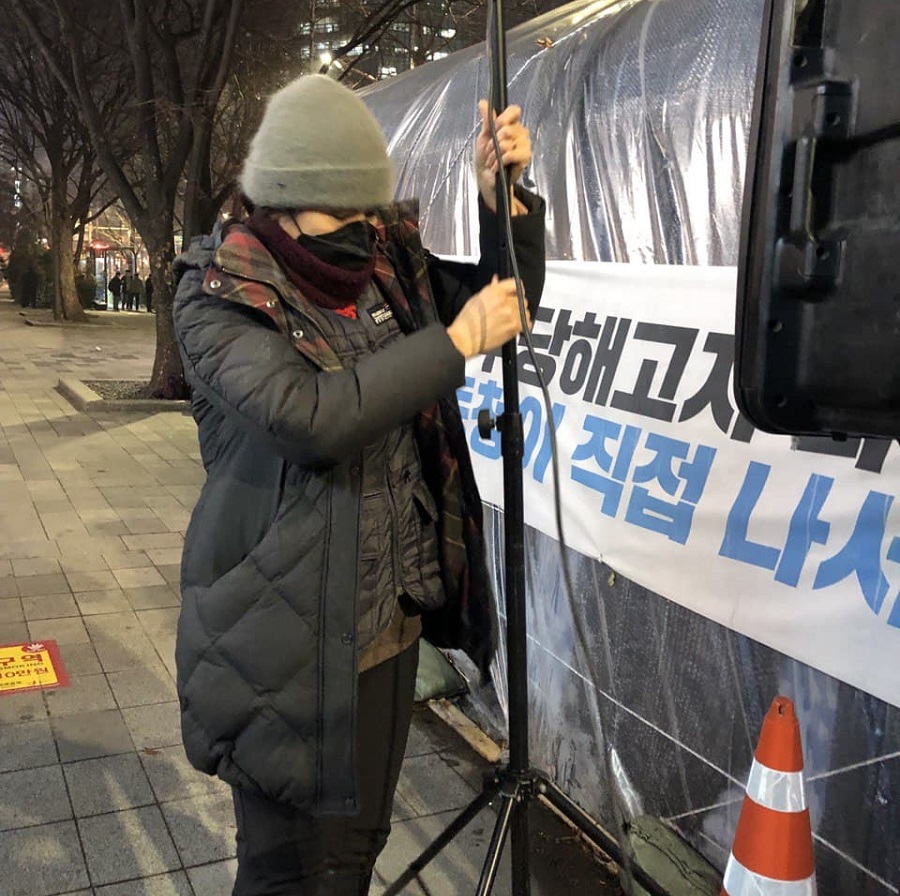 복직 투쟁은 하경 씨의 인생에 ‘수많은 첫 경험’을 안겨주었다. 2020년 5월 15일 종로 본사 앞에 농성천막을 쳤다. 농성장 밖에 써 붙인 날짜는 해고된 날이 시작점이 아니라 농성일이 시작점이다. 농성천막을 깔던 날부터 새는 이유는 아마도 투쟁의 의미를 더 새기기 위함인지도 모른다. 그녀는 처음 본 시민들에게 매일 억울한 해고를 호소했다. 노동청 점거, 50리길 걷기, 오체투지, 단식농성 등 안 해본 게 없다. 처음 사람들 앞에서 발언도 했고, 기자들과 인터뷰도 했다. 농성일이 길어질수록 그녀의 말도 길어져 갔다. 분노와 억울함의 크기에 비례한 것이리라.