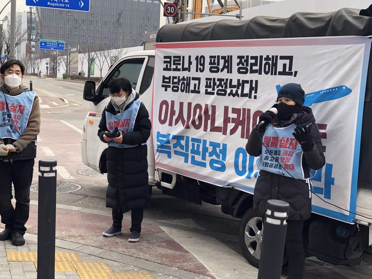 요즘 아시아나케이오 해고자들은 종로 아시아나항공 본사 앞에서 아침, 점심, 저녁 선전전을 한다. 고용계약을 맺은 곳은 아시아나케이오지만 원청은 아시아나항공이다. 전 아시아나항공 박삼구 회장이 있는 금호문화재단이 운영하는 회사 중 하나가 바로 아시아나케이오다. 다단계 하청노동자들의 임금을 비롯한 노동조건은 원청의 결정이 큰 영향을 미치기에, 원청을 상대로 싸움을 할 수밖에 없다.