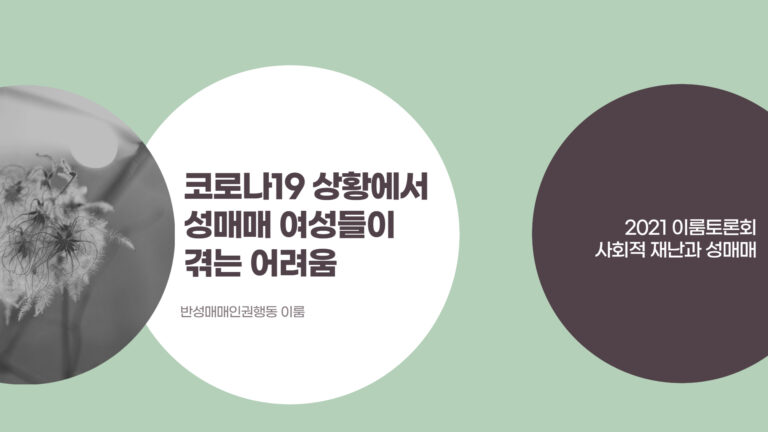 코로나19 감염도 걱정되고, 영업을 지속하는 것이 방역에 좋지 않다는 것도 알고, 만약 확진된다면 쏟아질 사회적 비난과 혐오가 걱정됨에도, 상환해야 하는 채무와 이자가 있어 출근해야 한다는 여성들의 이야기, 영업을 못해 일수 채무 상환이 어려워지고, 추심을 견디다 못해 고리의 대출로 돌려막기를 했다는 이야기를 당사자 커뮤니티와 내담자를 통해 들으며 암담함을 느꼈다.