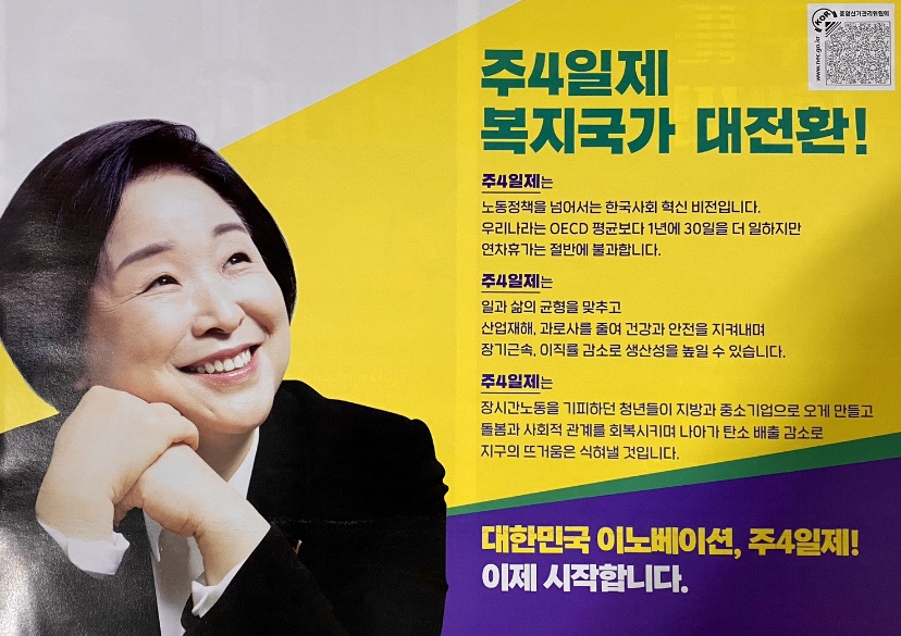 여성만을 타겟팅 해서 몇 개의 혜택만 주는 여성정책으로는 근본적인 구조나 환경을 바꿀 수 없어요. 출산 시 남성 파트너의 육아휴직 제공, 이런 것보다 노동시간 자체를 줄이고 노동시간 외에 무엇을 할 것인가에 대해 논의해야 한다고 봐요. 이런 패러다임의 전환은 개별적인 여성정책으로 해결할 수 없거든요. 그런 점에서 전 주4일제가 진짜 여성공약이었다고 생각해요.