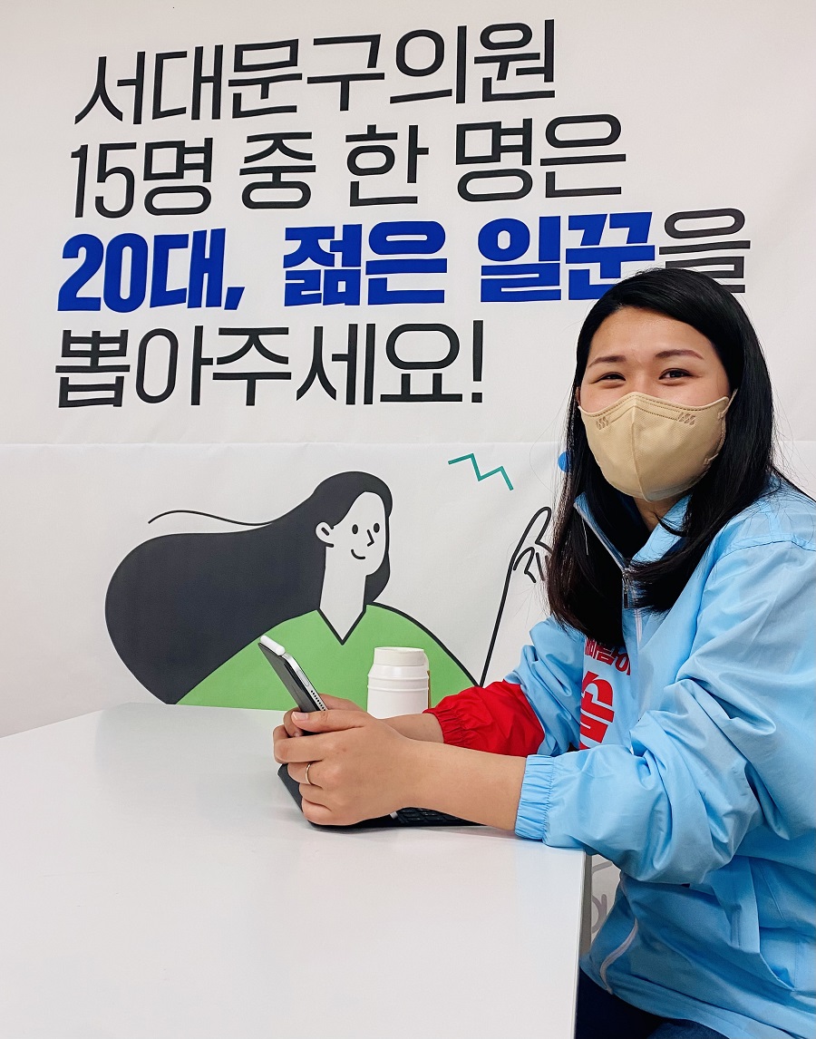 서울의 대표적 ‘젊은 동네’로 꼽히는 홍대입구, 신촌. 서울시 서대문 가 선거구(천연동, 충현동, 북아현동, 신촌동) 구의원에 도전하는 손솔 진보당 예비후보의 사무실은 지하철 홍대입구역에서 약 5분 거리에 위치해 있다. 길 하나를 두고 이 쪽은 서대문구, 저 쪽은 마포구인 곳에 자리한 사무실 안은 생기 있는 움직임으로 가득했다. 일찌감치 출사표를 던진 손솔 후보가 열심히 선거 운동을 하고 있기 때문이다.
