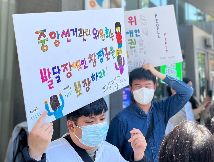 지난 3월에 치러진 20대 대통령선거를 앞두고 ‘발달장애인의 공직선거에 대한 정보 접근권 보장을 위한 차별구제 청구소송'이 있었다. 기백, 태준 활동가가 속해있는 피플퍼스트 성북센터를 비롯해 7개 단체로 구성된 ‘장애인 참정권 보장을 위한 대응팀'이 제기한 소송이다. 법원은 ‘강제조정’ 결정을 했고, 중앙선거관리위원회는 모든 장애유형에 투표보조를 허용한다고 지침을 변경했다. 2020년 총선을 앞두고 발달장애인에 대한 투표보조 지침이 삭제된 후, 소송 끝에 약 2년 만에 되찾은 지침이다. 하지만, 대선에서 여전히 발달장애인의 투표보조를 거부한 차별 사례가 전국에서 속출했다.