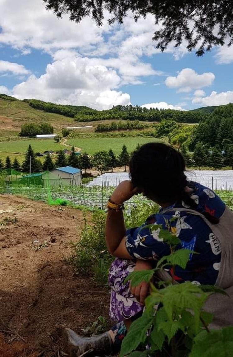 ![]() ▲ 밭두렁에 앉아 잠시 쉬고 있는 미연 씨의 모습. ⓒ김미연 |
