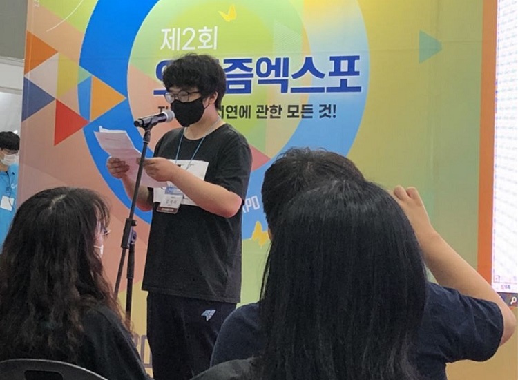![]() ▲ 2022년 7월 15~16일 서울 양재동 aT센터 제2전시장에서 열린 제2회 오티즘 엑스포(발달장애에 대한 통합적 정보를 제공하는 박람회)에서, 자신의 경험을 이야기하는 김세이 ‘세바다’ 활동가의 모습. (필자 제공 사진) |