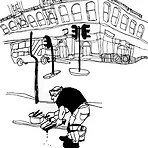 카페 현관 앞 바닥 공사를 하는 섬세한 손길 이두나의 Every person in London (2)   ※ 도시에서 나고 자랐지만 인간과 자연, 동물이 더불어 조화롭게 사는 세상을 꿈꾸며 그림을 그리는 일러스트레이터. 현재 비주얼 에이드visual aids 관련 일을 하고 있습니다. [작가 소개]  ▲ 이두나의 Every person in London (2)   런던 사람들보다는 런던 공사장의 일꾼들의 연장과 재료 쓰임에 관심이 갔다. 몸이 멀리 있다고 해서 ‘집 짓기’에 대한 마음이 떠나 있는 건 아닌가 보다. 주물의 쓰임. 각기 모양과 색이 다른 현관의 커다란 문. 모든 것이 우리의 집과 왠지 달라 보였다. 아니, 막연하게 더 좋아 보였다. 카페 현관문을 묵직하게 잡아줄 사자 모양 주물 손잡이를 꼭..