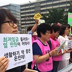 청년층보다 여성노동자에게 더 절박한 ‘최저임금’전 연령에 걸쳐 “십년 일해도 최저임금” 올해도 어김없이 최저임금 결정 시기가 다가오고 있다. 최저임금은 매년 8월 최저임금위원회가 결정하며, 지난 4월 7일 첫 회의를 시작했다. 세계 각국에서는 이미 최저임금을 대폭 인상하거나, 인상할 계획을 가지고 있다. 미국 캘리포니아주는 2022년까지 최저임금을 15달러(약 1만7천원, 현재 10달러)로 인상하기로 확정했고, 일본의 아베 총리도 최저임금을 3%씩 올려 1천엔(약 1만원, 현재 약 800엔) 대까지 인상한다는 목표를 세웠다. 영국은 최저임금 현실화를 위해 ‘생활임금제도’를 도입했다. 2020년까지 최저임금을 9파운드(약 1만5천원, 현재 6.5파운드)까지 올려 노동자들의 생계비를 보장하겠다고 밝혔다. 이..