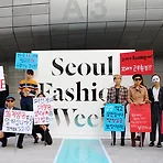 “You are not Free"(당신은 공짜가 아냐) 화려해 보이는 패션디자이너, 그 이면의 삶 “50~80만원 받아서 옷은 사니? 월세는 내니? 밥은 먹고 다니니? 정말 살만하니?” “21세기 하이패션 시대! 20세기 근무 환경?” “하루 14시간 근무, 월급은 쥐꼬리. 사람 사는 겁니까?” 지난 10월 17일 한국 패션업계 최대 행사인 ‘2015 S/S 서울패션위크’(서울시가 주최하는 글로벌 패션이벤트)가 열린 동대문디자인플라자(DDP) 앞에서 열명 남짓의 사람들이 모여 퍼포먼스를 진행했다. ▲ ‘2015 S/S 서울패션위크’가 열린 동대문디자인플라자앞. 패션노조와 알바노조 회원들. ©패션노조 페이스북 이들은 2015 S/S 샤넬 콜렉션의 콘셉트를 따라 “간지나게 차려 입고 선글라스 끼..